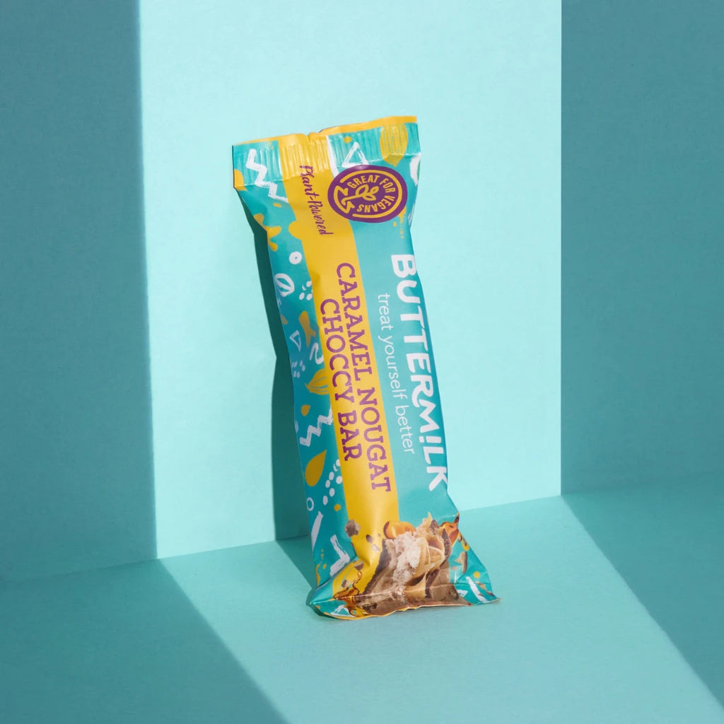 This choccy snack bar is filled with malt flavoured nougat with a caramel layer enrobed in plant based choccy. Perfect to grab on the go.
