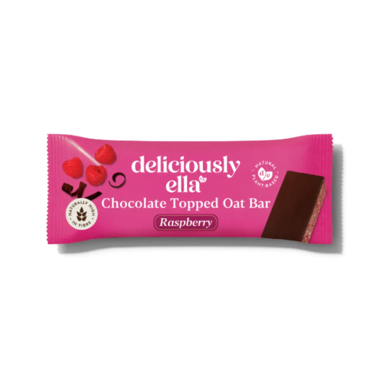 A soft-baked oat bar layered with tangy raspberry pieces and topped with smooth chocolate. The balance of fruity freshness and indulgent richness makes it a satisfying plant-based snack that feels both wholesome and treat-like.