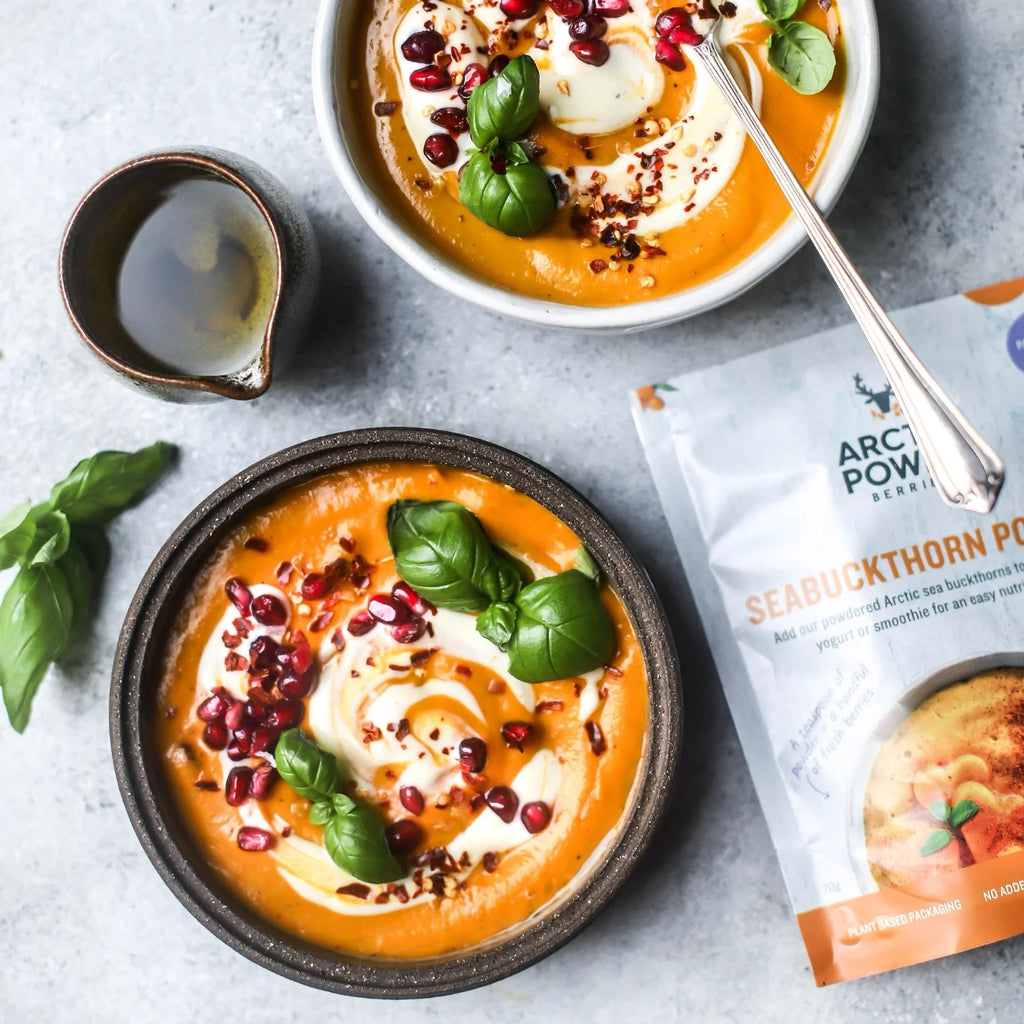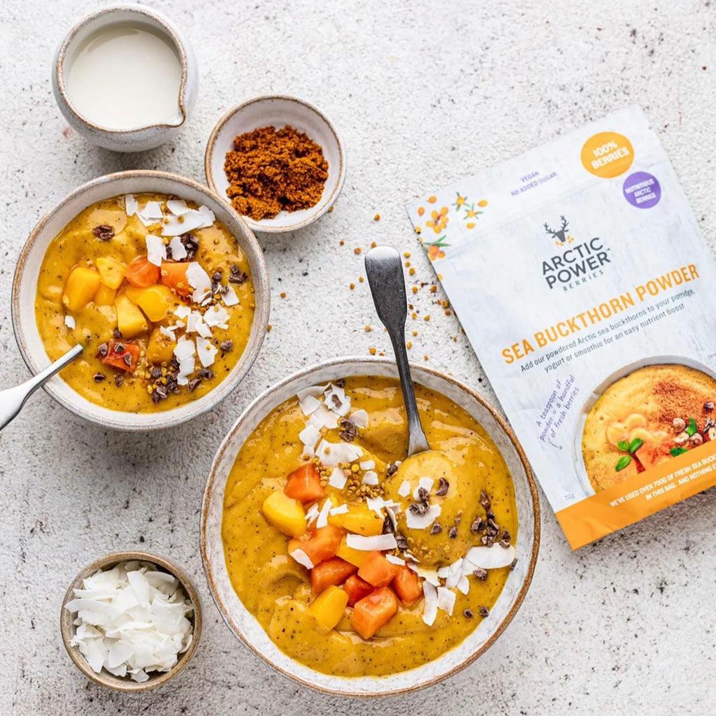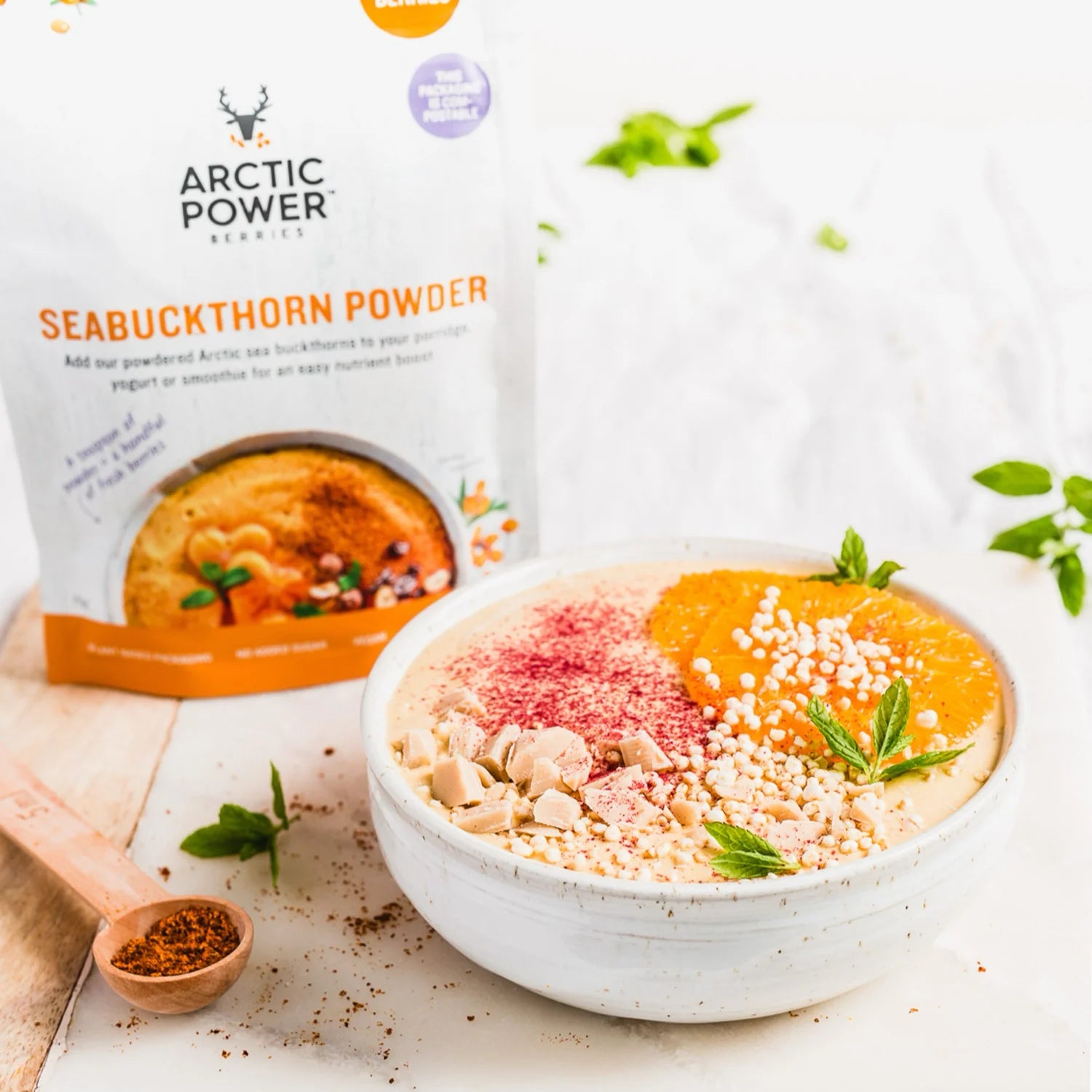 ✔️ Superfood powder: 1 tsp = a handful of fresh, antioxidant rich sea buckthorn berries!