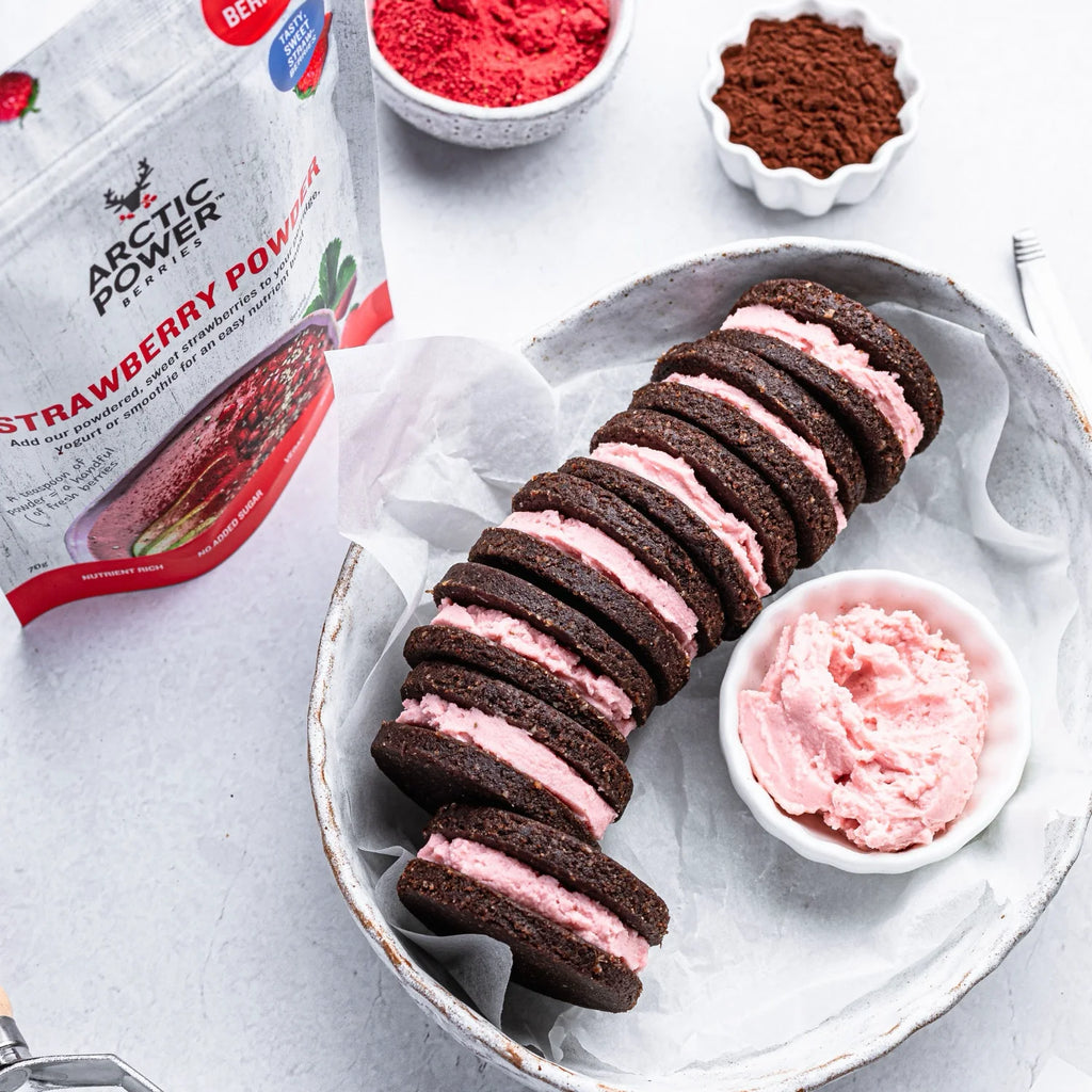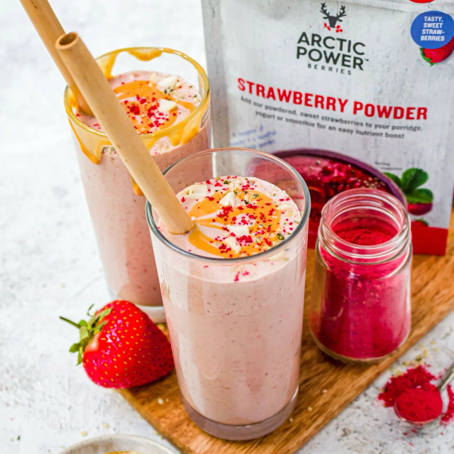 Our 100% Strawberry Powder is made from naturally sweet, sun-ripened strawberries. Nothing added.