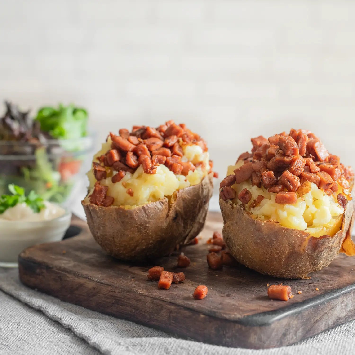 Our plant-based bacon cubes add the perfect touch to any traditional dish. Smoky and savoury in flavour, they are perfect for vegan carbonara or hearty flatbreads and pizzas.