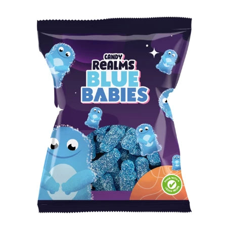 Candy Realms Blue Babies are irresistible, berry-flavored gummy candies that are as fun to eat as they are delicious. Shaped like tiny blue babies, these chewy treats are perfect for satisfying your sweet tooth with their bold, fruity flavour and soft, bouncy texture. Ideal for parties, movie nights, or simply indulging in a playful snack, Candy Realms Blue Babies offer a whimsical and tasty treat that will delight candy lovers of all ages.