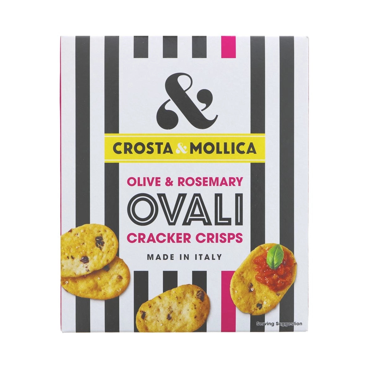 Extra thin and delicately crisp our Ovali are a classic Italian aperitivo snack. Made with Leccino olives and Italian rosemary by our artisan bakers in Italy they're finished with a light sprinkling of salt ' creating a deliciously savoury little nibble that pairs perfectly with your favourite pre-dinner tipple.