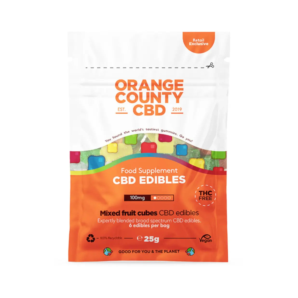 Orange County CBD Gummy Cubes Mixed Fruit 25g