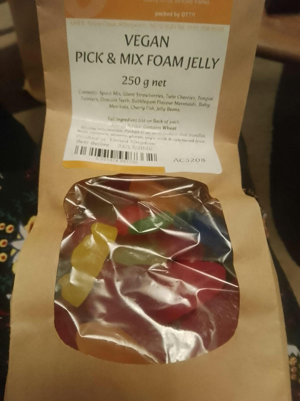 A delicious bag of vegan pick and mix with an assortment of foam jelly sweets. Including giant strawberries, funky fruits, tongue painters, raspberry and blueberry foams, banana and caramel foams.